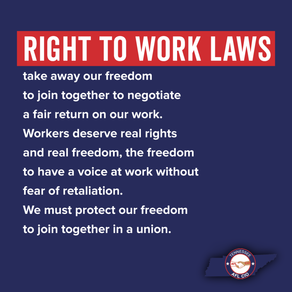 Learn more about Tennessee’s right-to-work law and right-to-work laws in general here.