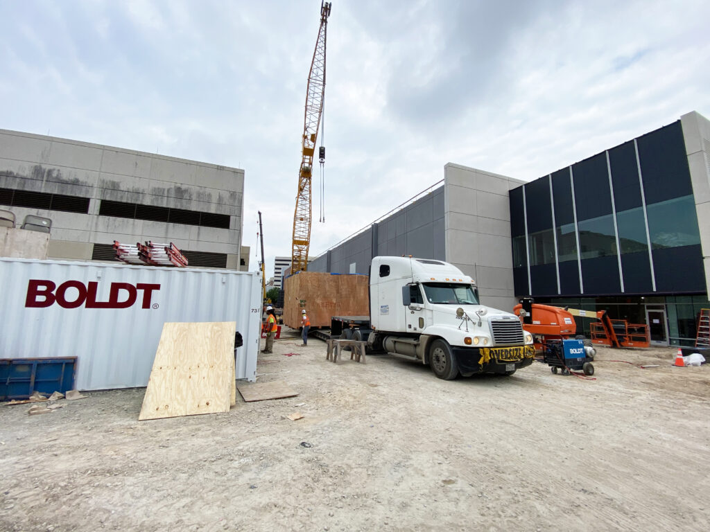 Tractor-trailers are delivering more than 300 loads of equipment to the jobsite, Maxwell said. Boldt employees are responsible for uncrating the equipment, using rigging to fly it into the building, and then proceeding with installation.