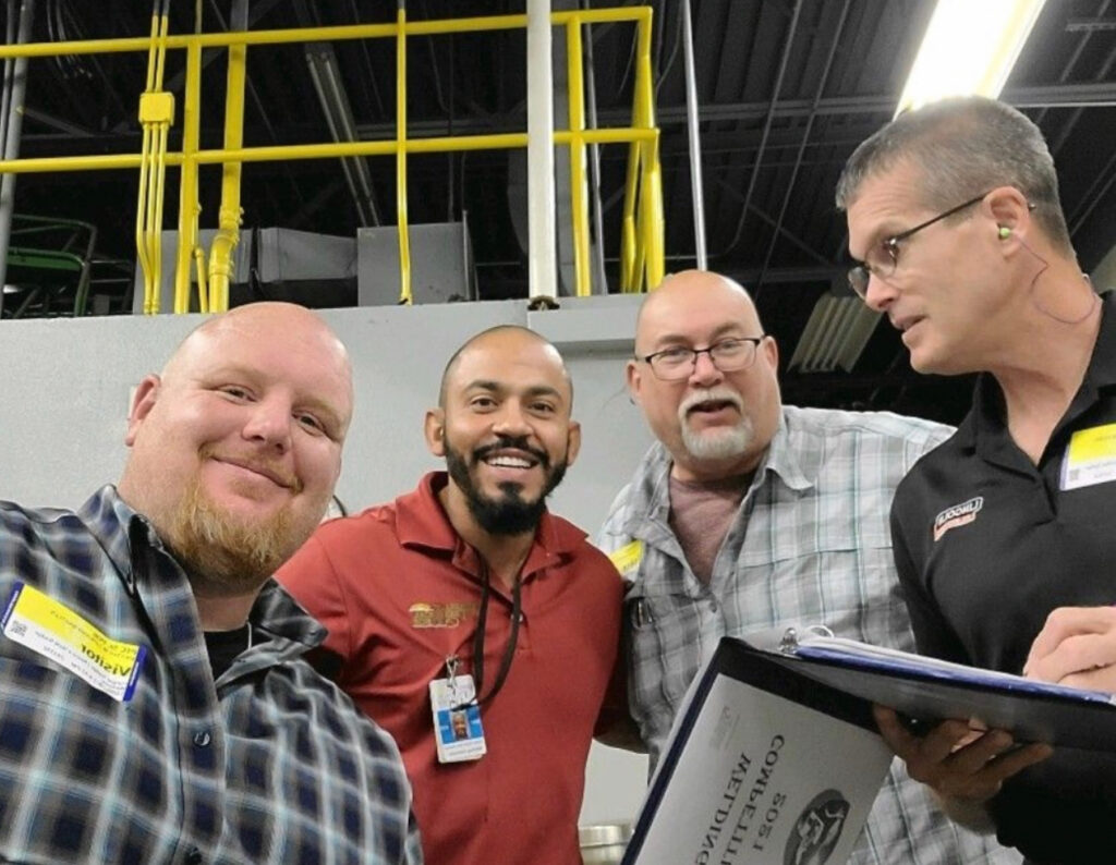 Matt at a welding competition with Val Dos Santos, welding instructor at Pinellas Technical College, Daryl Peterson, District 5 director of the American Welding Society, and Brad Wickline, Lincoln Electric representative