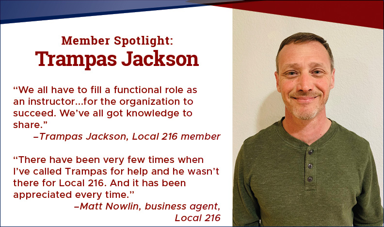 “He has helped out Local 216 on some projects that were a challenge for us with available manpower, and he stepped up at our last election and ran for office,” Nowlin said. “There have been very few times when I’ve called Trampas for help and he wasn’t there for Local 216. And it has been appreciated every time.”
